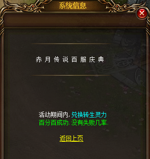 活动内容:活动期间内,兑换转生灵力百分百成功.没有失败几率
